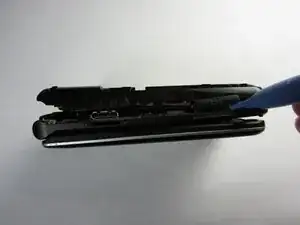 Вставьте лопатку в щель, разделяющую две части телефона.