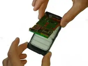 Используйте лопатку, чтобы приподнять плату от телефона.