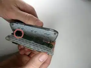 Удалите 5 винтов: по 1 из каждого угла телефона и 1 из центрально-правой части телефона.