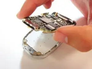 Убедитесь, что вы не поднимаете верхнюю часть платы логики, так как она всё ещё соединена с задней крышкой телефона.