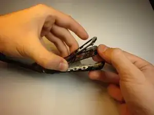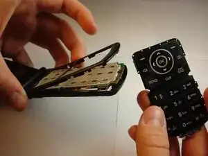 Вставьте инструмент для открытия iFixit между крышкой клавиатуры телефона и задней крышкой и аккуратно расстыкуйте.