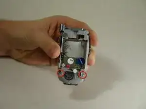 Найдите два винта на задней стороне телефона.