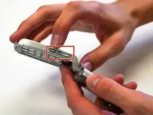 Используйте тот же инструмент, чтобы вскрыть щель в нижней части телефона.