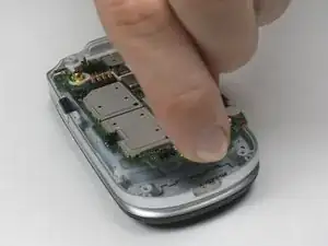Аккуратно поднимите логическую плату, поместив указательный палец сверху, а большой палец — в нижней части телефона для опоры.