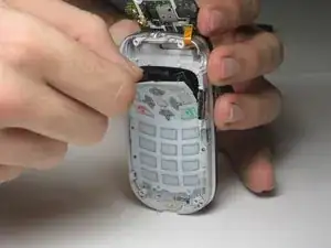 Аккуратно снимите клавиатуру с телефона, захватив её за верхний край и медленно отклеивая сверху вниз.