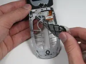 Распахнув телефон, оттяните клавиатуру от корпуса, начиная снизу.
