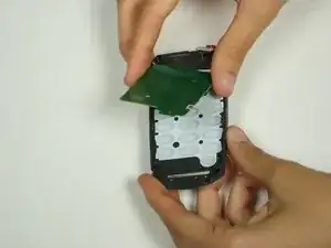 После удаления материнской платы поднимите зеленый датчик клавиатуры с передней панели.