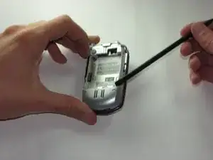 Убедитесь, что батарея вынута из телефона, аккуратно потянув ее вверх пальцами.