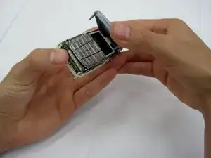 Клавиатуру довольно легко снять, она не закреплена никакими деталями телефона, кроме крышки. При замене клавиатуры убедитесь, что она правильно ориентирована, так как может смещаться.