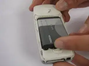 После снятия задней крышки батарея должна быть доступна. Извлеките батарею, поддевая её. Это можно сделать с помощью ногтя или инструмента для поддевания.