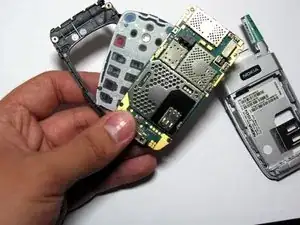 Осторожно используйте пластиковый инструмент для отделения заднего серебряного корпуса от передней части телефона. Это может потребовать силы.