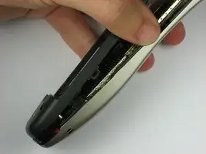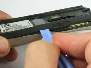 Вставьте пластиковый инструмент для вскрытия между лицевой панелью и чёрной задней панелью. Осторожно подденьте их, работая от нижнего конца к верхней части телефона.