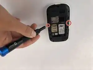 Удалите два винта, расположенные с левой и правой стороны телефона.