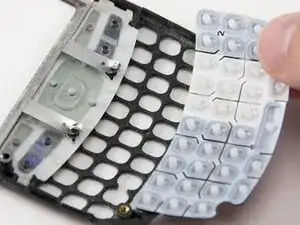 Поднимите и снимите резиновую клавиатуру и накладки кнопок.