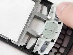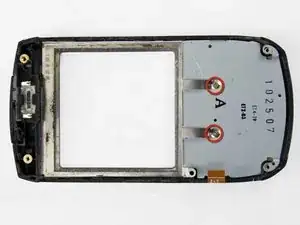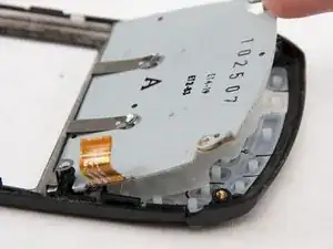 Положив устройство экраном вниз, используйте насадку Phillips 00, чтобы выкрутить серебряный винт длиной 0,124 дюйма с левой стороны платы над плоским кабелем.