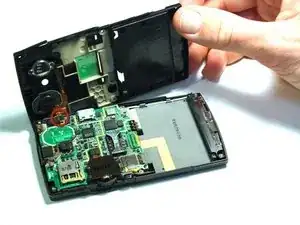 Поместите большой палец на нижнюю половину телефона и сдвиньте крышку, слегка надавливая на неё.