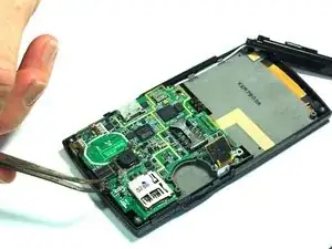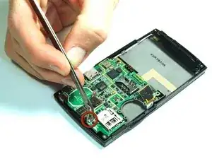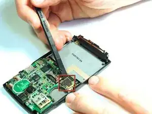 Используйте пинцет, чтобы отщёлкнуть соединение между материнской платой и динамиком. Динамик прикреплён к передней панели.