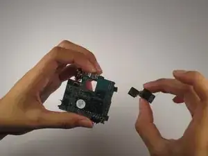 Если кнопка питания не выпала на предыдущем шаге, извлеките её пинцетом.