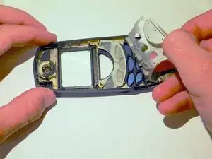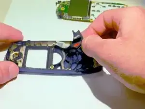 Снимите серую клавиатуру с телефона, отгибая её назад.
