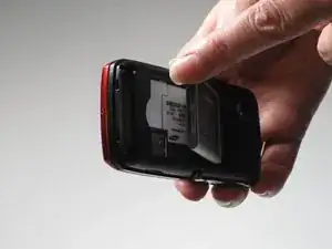 Это отпустит защёлку задней крышки; затем приподнимите заднюю крышку вверх и отведите её к другому концу телефона.