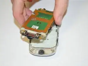 Схема жестко соединена с другими компонентами телефона и не может быть полностью удалена. Будьте крайне осторожны при выполнении этого шага, чтобы не повредить электронику или проводку.