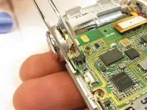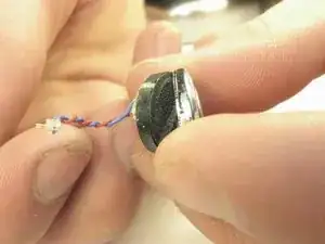 Используя отвертку Phillips #00, удалите винт, удерживающий динамик, с каждой стороны.
