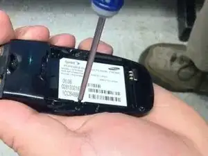 С помощью отвертки Phillips #00 открутите четыре винта из нижней половины телефона в отсеке для аккумулятора. Уберите винты в сторону.