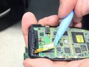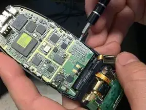 С помощью плоской отвертки приподнимите материнскую плату и удалите ее из телефона.