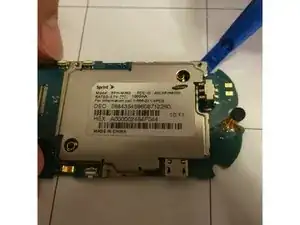Переверните логическую плату обратно и с помощью пластикового инструмента снимите металлическую крышку на плате.