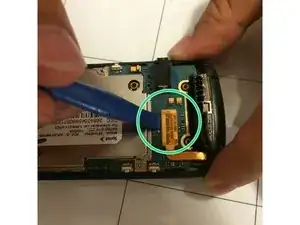 Используйте пластиковый инструмент, чтобы поддеть и вынуть логическую плату из корпуса телефона со стороны нижней части устройства.