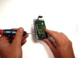 Используйте плоскую отвертку, чтобы осторожно поддеть логическую плату и клавиатуру от устройства.