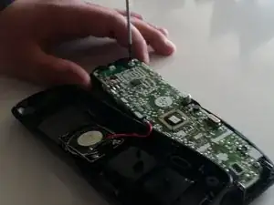 Удалите два винта Phillips #1 длиной 9 мм в отсеке для батареи.