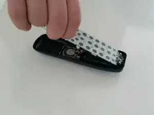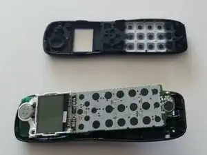 Снимите резиновую клавиатуру с передней половины корпуса трубки.