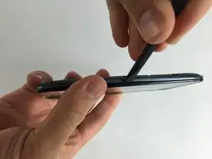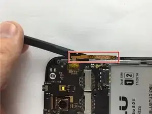 Используя лопатку, осторожно вставьте ее между кнопкой и телефоном и аккуратно подденьте.
