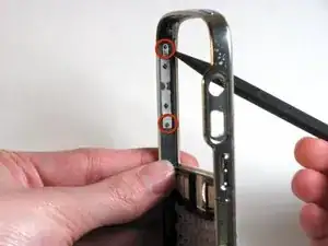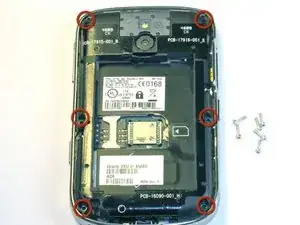 Удалите шесть винтов Torx длиной 7,0 мм, удерживающих задний корпус к остальной части телефона.