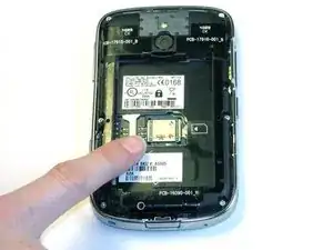 С верхней стороны используйте ноготь, чтобы достать батарею.