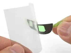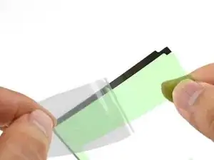 Снимите зелёную пластиковую плёнку со всех клеевых полос, чтобы обнажить клеевую сторону, обращённую к экрану.