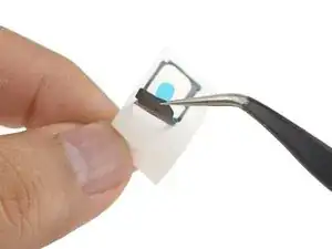 Пинцетом снимите синюю пластиковую плёнку с клея.