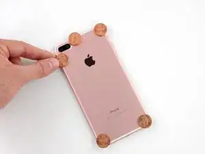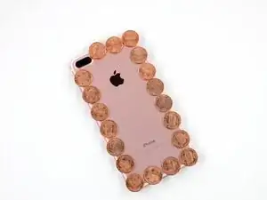 Чтобы клей правильно связался, нужно равномерно приложить давление по периметру iPhone. Выступ камеры усложняет задачу, но вы можете компенсировать это, положив iPhone лицевой частью вниз и разместив монеты по периметру.