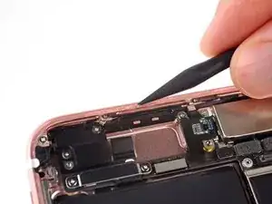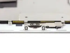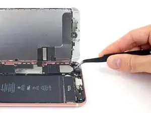 Только для iPhone 7 / 7 Plus: Перед установкой дисплея проверьте состояние чёрных прокладок на двух небольших стойках для винтов на нижнем краю дисплея, рядом с кнопкой «Домой».