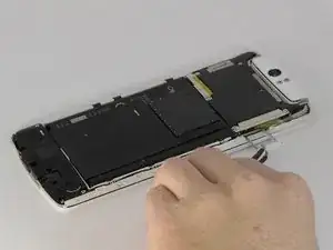 Осторожно проведите пластиковым инструментом по краю телефона, чтобы освободить заднюю крышку от корпуса. При отсоединении крышки могут слышаться щелчки.