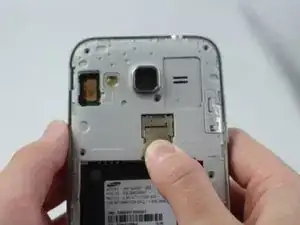 Используйте ноготь или плоский инструмент, чтобы поддеть заднюю крышку.