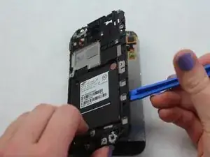 Используйте инструмент для вскрытия iFixit, чтобы снять пластиковую панель, отделяющую материнскую плату от экрана.