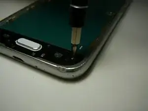 Используйте тонкий пластиковый инструмент или пластиковую лопаточку, чтобы поддеть стеклянный дигитайзер и ЖК-экран по краям.