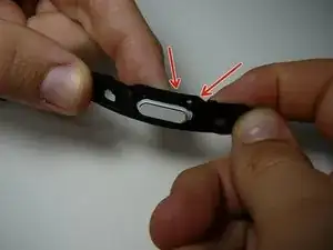 Слегка согните чёрный элемент и аккуратно нажмите белую кнопку, пока она не выскочит из чёрного пластикового элемента.