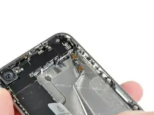 С помощью пинцета снимите небольшой кусочек ленты, закрывающей тыльную сторону кнопок громкости.