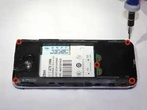 Открутите пять винтов Phillips #00 длиной 4 мм, отмеченных красным кружком, на задней панели.
