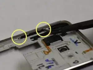 После разборки задней части устройства возьмите панель с кнопками громкости.