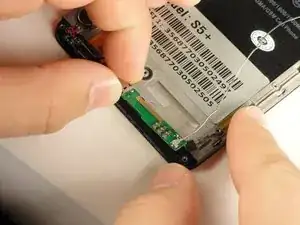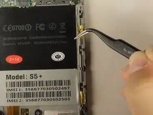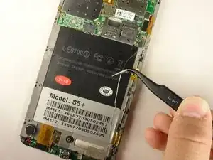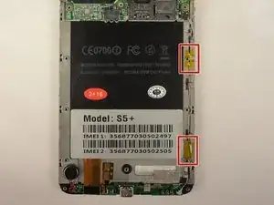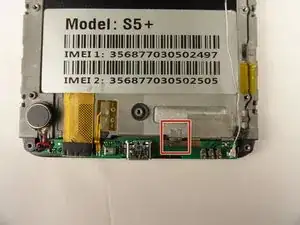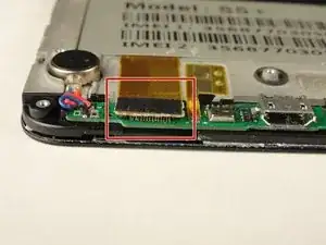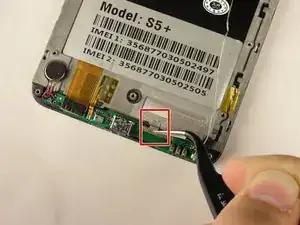Снимите серебряную ленту, удерживающую нижнюю материнскую плату на передней панели телефона.