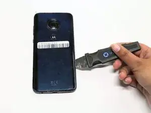 Ослабьте клей, разрезая по бокам телефона ножом для взламывания, и приподнимите заднюю крышку.